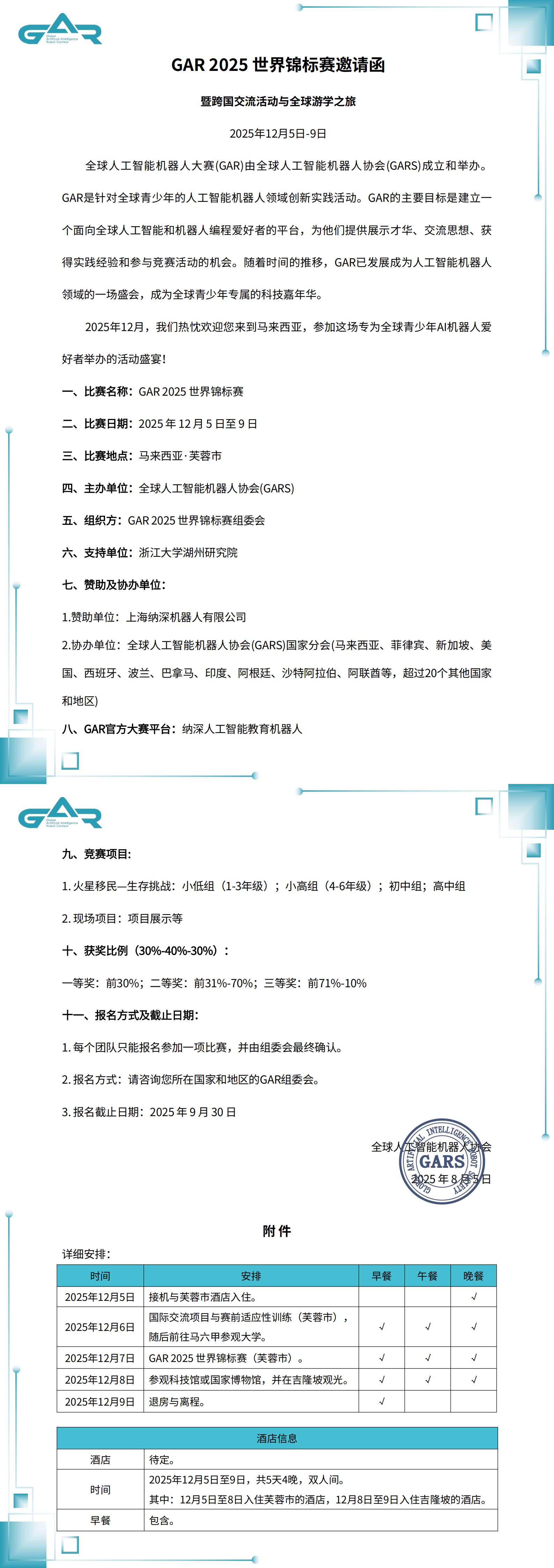GAR 2025 中国国际公开赛暨国际游学之旅 行程预告第二期