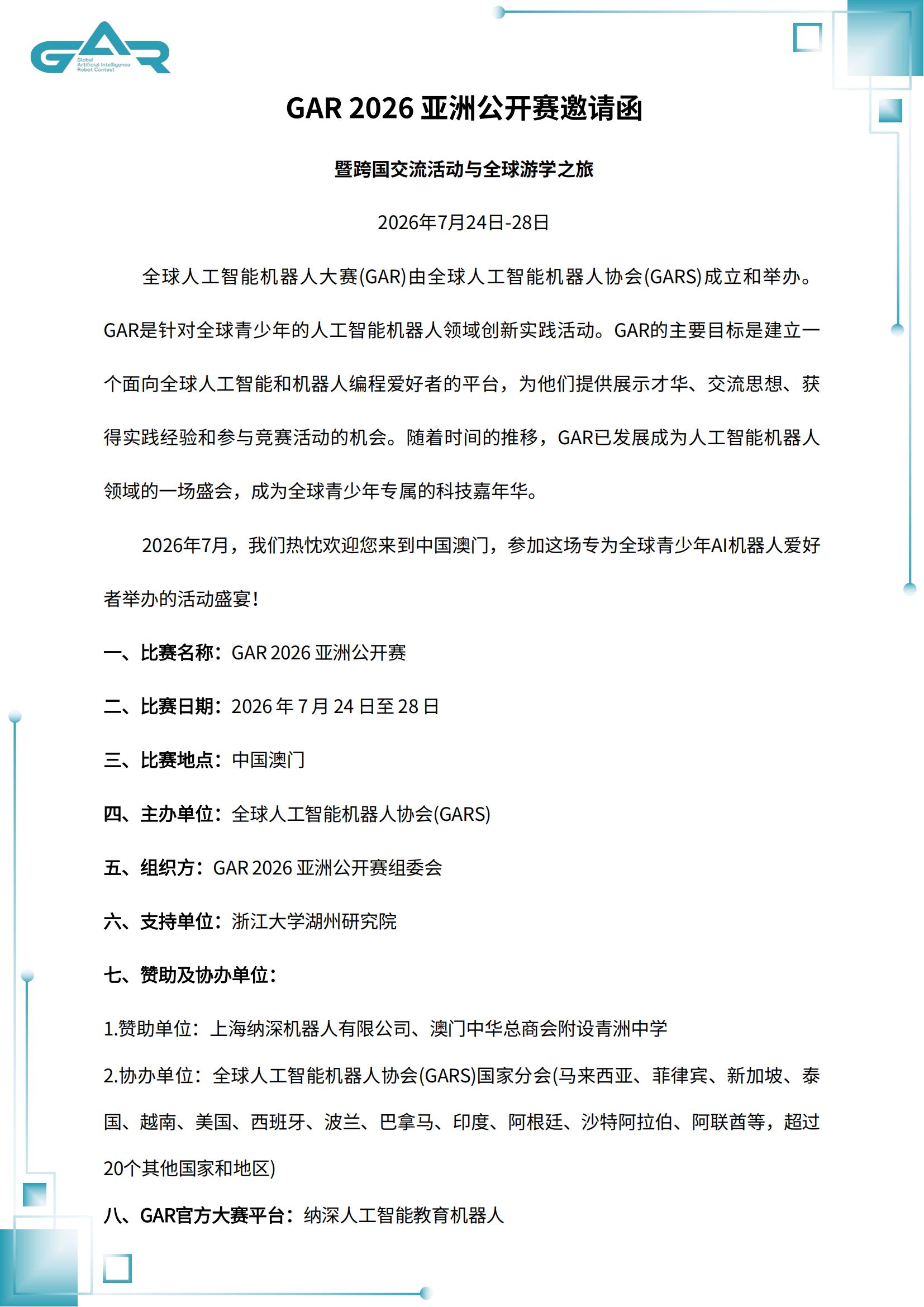 GAR 2026 亚洲公开赛邀请函