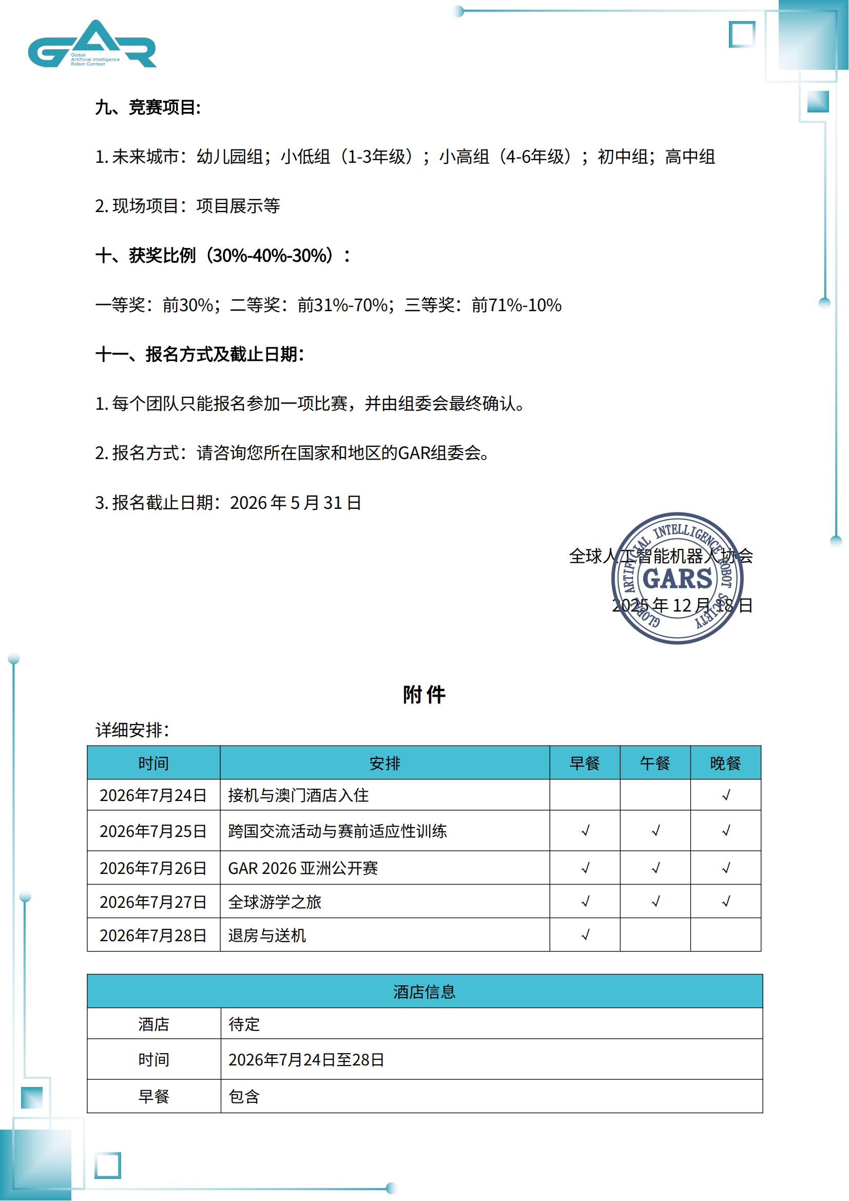 GAR 2025 中国国际公开赛暨国际游学之旅 行程预告第四期